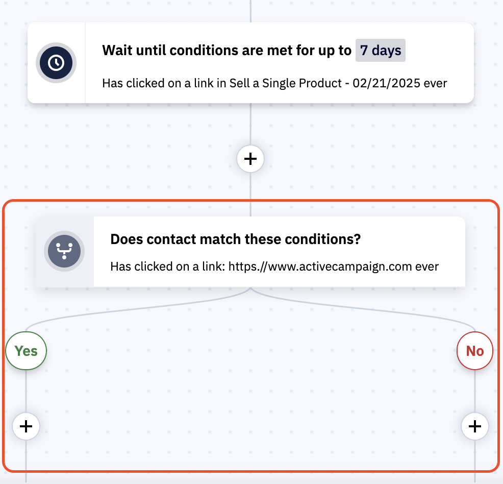 - Depending on whether your contact matches the conditions you set, they will proceed down the “Yes” or “No” path.